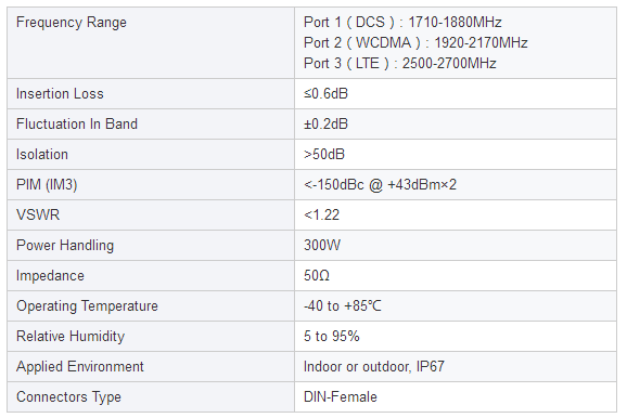 การสูญเสียการแทรกต่ํา, VSWR ต่ํา, PIM ต่ํา(IM3